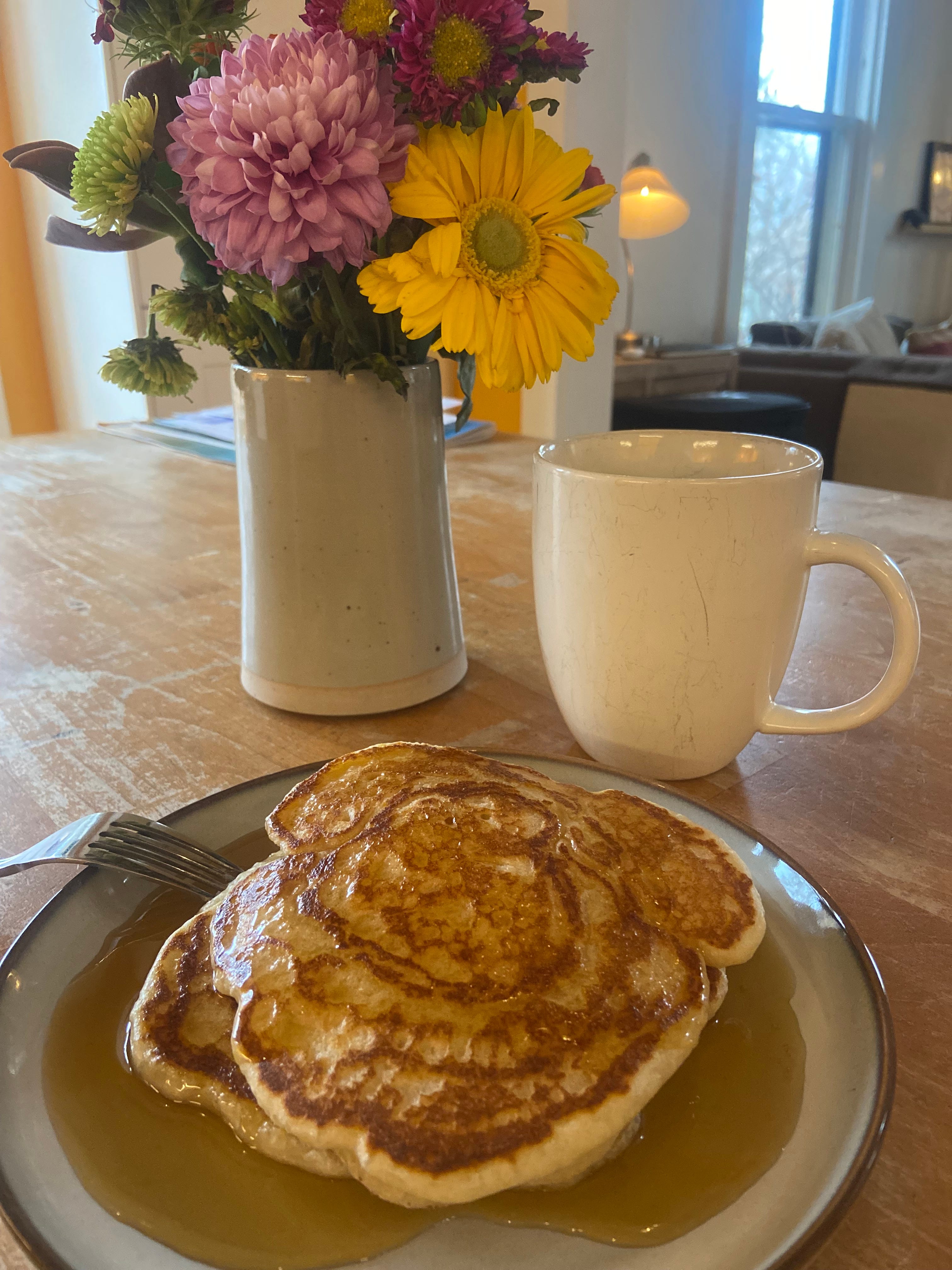 *Because I’m only making pancakes if I genuinely feel like it and absolutely not to fulfill some societal ideal of motherhood. I just really like to be cozy and eat pancakes.